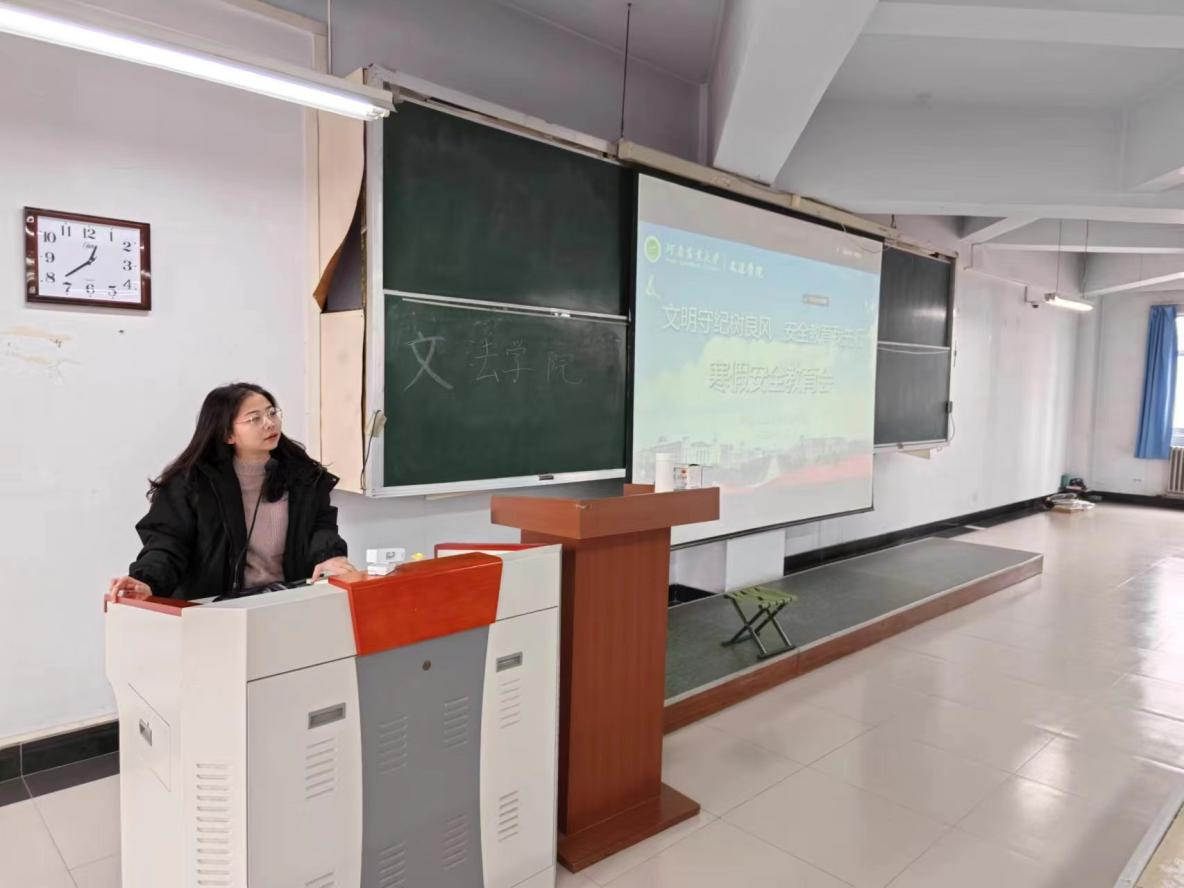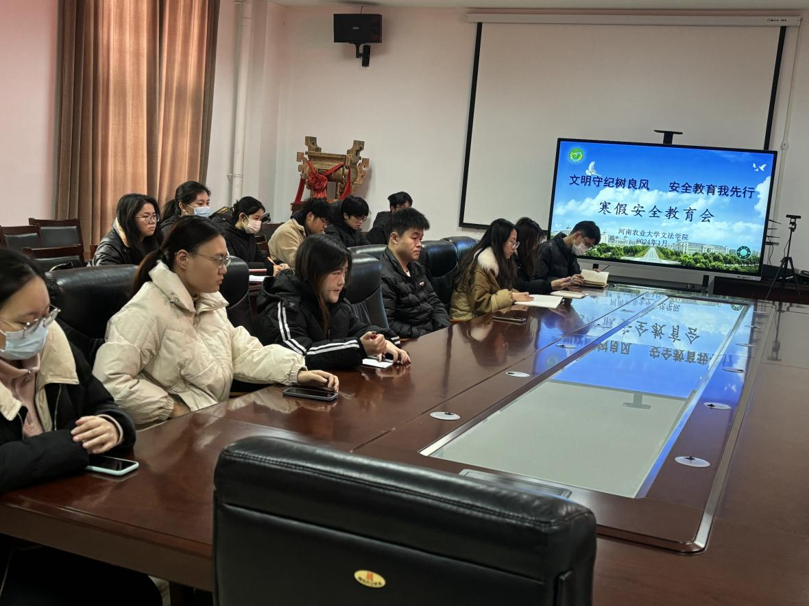 分别于在桃李园校区及龙子湖校区召开寒假安全教育主题会,学院团委副书记赵梦闪和辅导员盛戈主讲,全体学生通过线上线下参会。