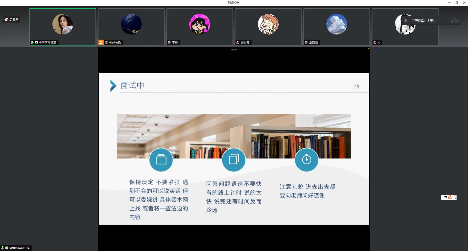 2023届六位毕业生进行了分享,他们结合自身经历,就调剂信息渠道的寻找、调剂信息的搜集、调剂重点的把握、调剂系统的使用诀窍、简历制作、心态调整、面试技巧等进行了分享。