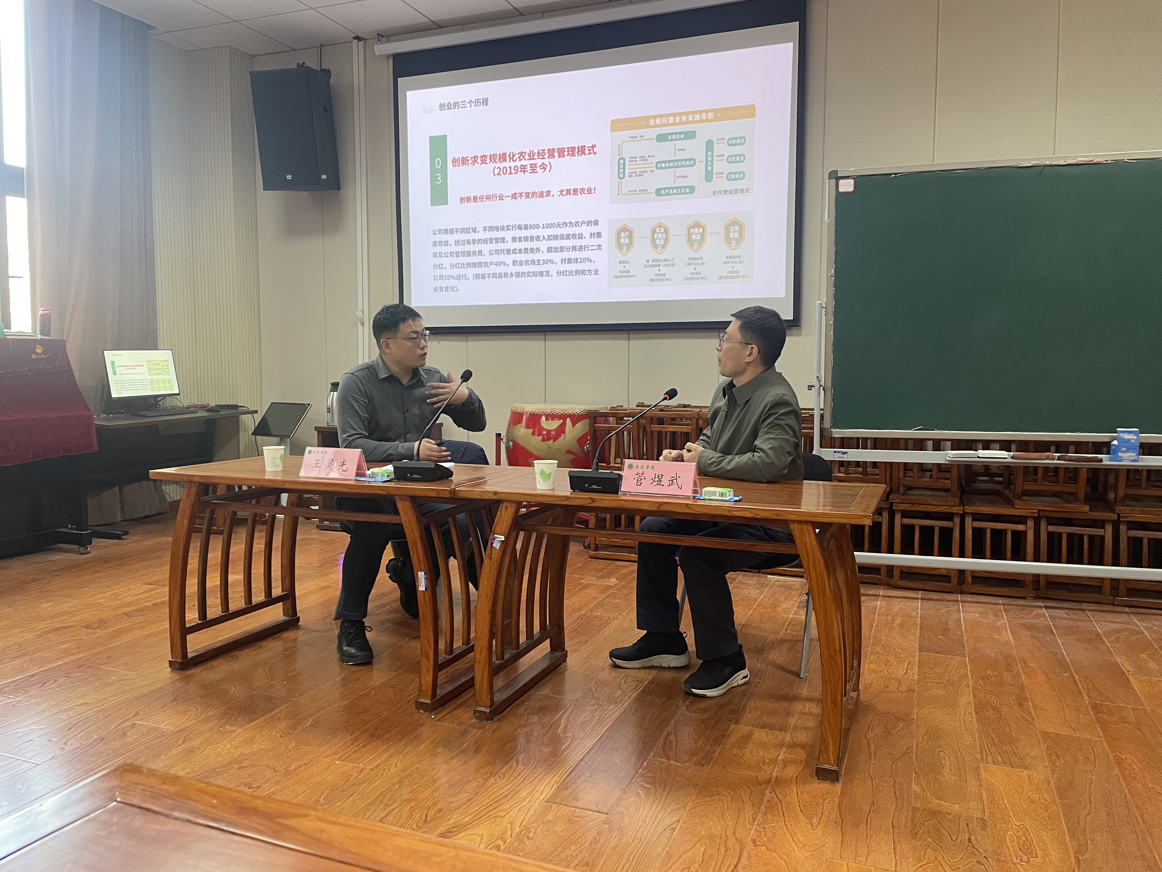 邀请我校优秀校友、共青团第十七届全国代表大会代表、河南省促进农村就业创业先进个人、河南赋农科技有限公司董事长王灵光举办新型农业经营主体发展与创新专题报告会。院长王晓勇、行政管理系主任管煜武以及部分教师和农业管理专业研究生参会,会议由王晓勇主持。