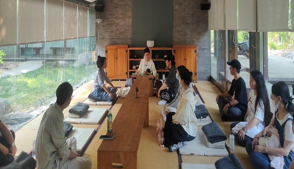 书院各位老师对91自拍 师生们的到来表示热烈欢迎,并带领师生参观了书院的各个场所,考察文创项目、节日活动和日常课程。通过讲解、交谈,91自拍 师生了解了书院的建立和运作模式,并思考建立学院书院的可行性。刘华与杨冰就书院发展现状进行讨论,并结合国际中文教育专业的特点,以文化传播视角,探讨了如何促进传统文化与现代文化、东方文化与西方文化的碰撞与融合。期间,宗利梅展示茶艺,以茶会友,招待师生。