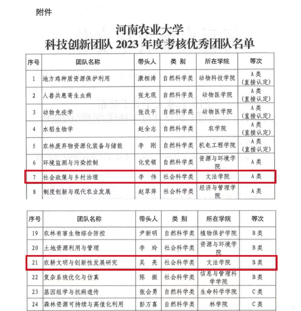 科技创新团队2023年度考核优秀团队A类奖;由吴亮副教授带头的汉语言文学学科团队-“农耕文明与创新性发展研究”团队获91自拍