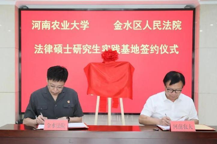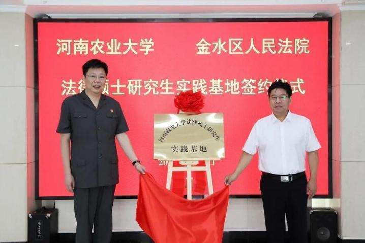 与金水区人民法院举行了“法律硕士研究生实践基地”签约暨揭牌仪式。金水区人民法院党组书记、院长闫明,党组副书记、副院长任凯,党组成员、政治部主任李文涛,91自拍