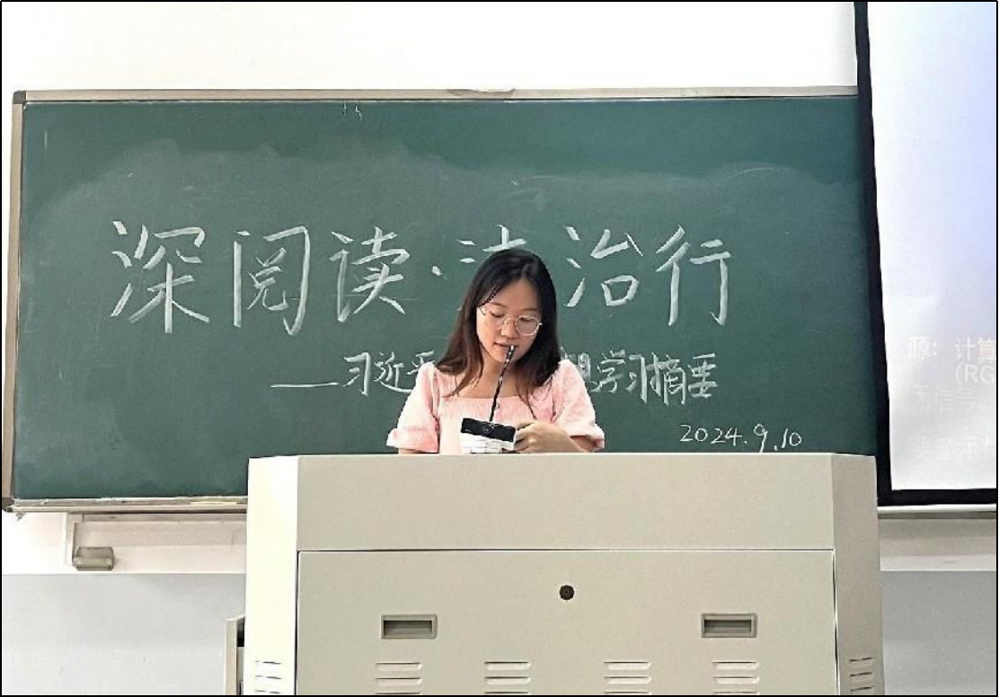 本科生党支部于2024年9月10日中午12点在E109开展了以“深阅读·法治行:习近平法治思想领航”为主题的党课活动。