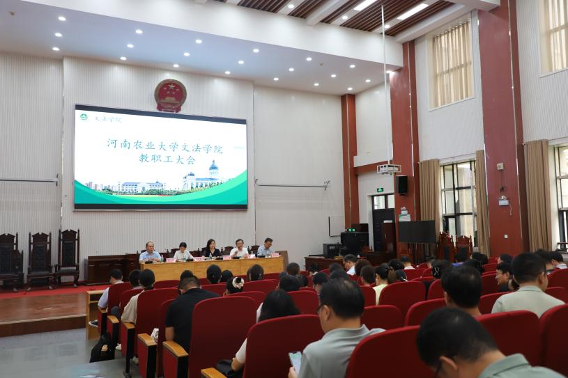 在龙子湖校区模拟法庭召开学院教职工大会,全体教职工参加会议,91自拍