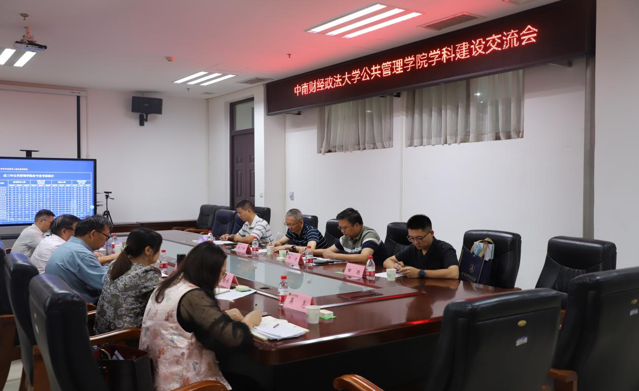 在龙子湖校区A310会议室,特邀中南财经政法大学公共管理学院院长张广科,副院长田进,MPA教育中心办公室主任郭源泉,研究生办公室教学秘书田雨,召开中南财经政法大学公共管理学院学科建设交流会。91自拍