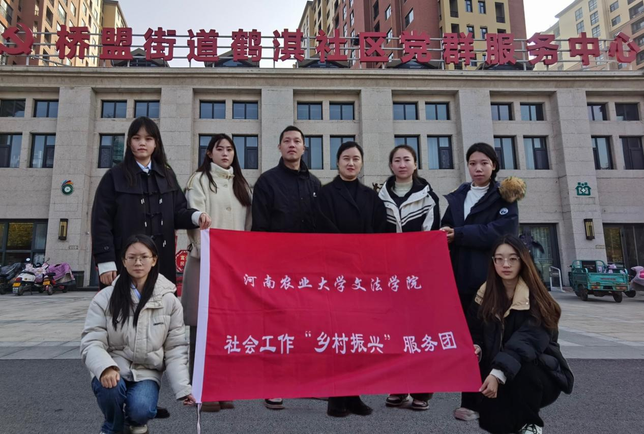 社会工作专业师生深入鹤壁市淇县桥盟街道围绕养老事业和养老产业政策机制开展调研。本次调研以全面深入探究社区综合养老服务中心的服务运营实况及老年群体的具体社区服务需求为目标,旨在为乡村振兴背景下构建更加完善的养老服务体系提供坚实的科学依据与可行的实践指导。
