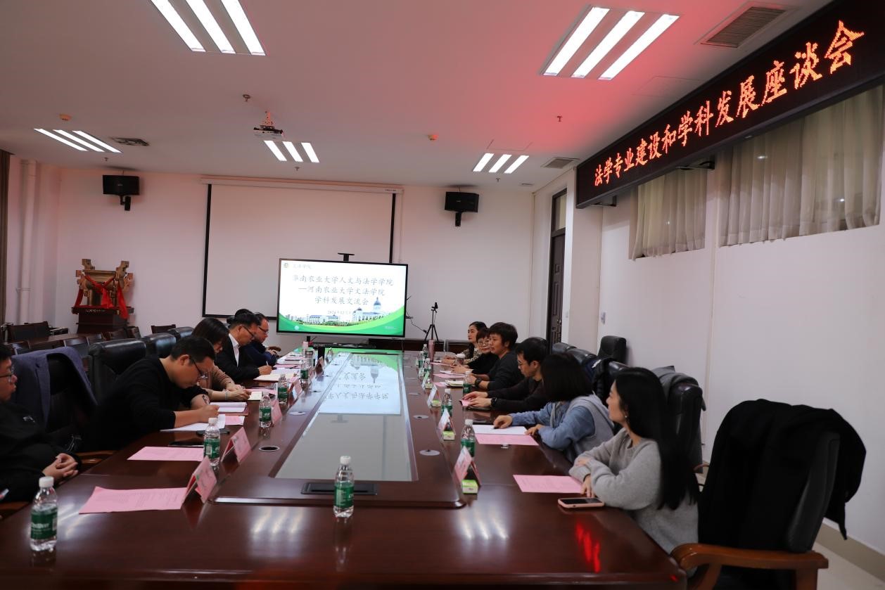与华南农业大学人文与法学学院在学院会议室举行法学学科专业交流座谈会。院党委书记牛娟,副院长杨红朝,法律系主任韩宁,法律系教师代表,以及华南农业大学人文与法学学院法学系副主任王琳,法学系教研室主任刘万洪等参加了交流座谈会。牛娟对王琳一行的到访表示热烈欢迎,并详细介绍了我校以及91自拍 的基本情况。她指出,作为同属于农业院校的两所学府,在人才培养、学科专业建设等方面,有很多可以相互借鉴和学习的地方,希望双方通过交流增进彼此了解,共同推进法学学科专业的发展。王琳对91自拍 的热情接待和周到安排表示衷心的感谢,并介绍了华南农业大学人文与法学学院在法学学科建设、专业建设、人才培养等方面所取得的成就和经验。杨红朝就91自拍 在法学学科建设以及研究生培养方面的现状和规划进行了详细的阐述,韩宁对91自拍 法学专业建设情况进行了深入的介绍。在随后的交流环节中,双方就法学人才培养、学科建设、专业建设等议题进行了广泛而深入的讨论,分享了各自的经验和见解。