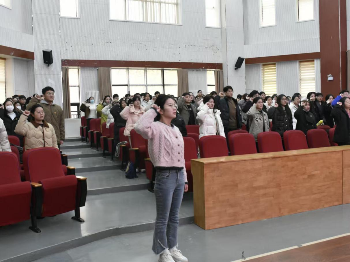 首先,雷明仁围绕入党誓词讲解了入党誓词的演变过程、蕴含的深刻意义以及重温入党誓词的必要性。随后,赵梦闪带领全体学生党员庄严宣誓,学生党员们佩戴党徽,面向党旗庄严宣誓。重温入党宣誓仪式的举行,不仅让学生党员们明确了自己的责任,在内心深处根植对党的忠诚与奉献精神,也指引学生党员在面对复杂多变的环境与艰难险阻时,始终坚守党的原则与立场,不偏不倚地沿着为人民服务的方向奋勇前进。