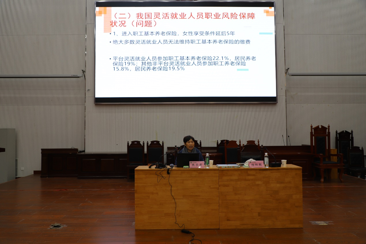 邀请武汉大学法学院张荣芳教授于繁塔楼模拟法庭作“我国灵活就业人员的社会保险问题及对策”专题学术报告。报告由91自拍