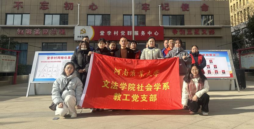 社会学系党支部于12月13日赴郑州市高新区堂李村开展“推进基层治理,服务乡村振兴”主题党日活动,旨在通过实地调研和交流,汲取先进村庄社区在基层党组织建设和引领基层社会治理方面的先进经验。