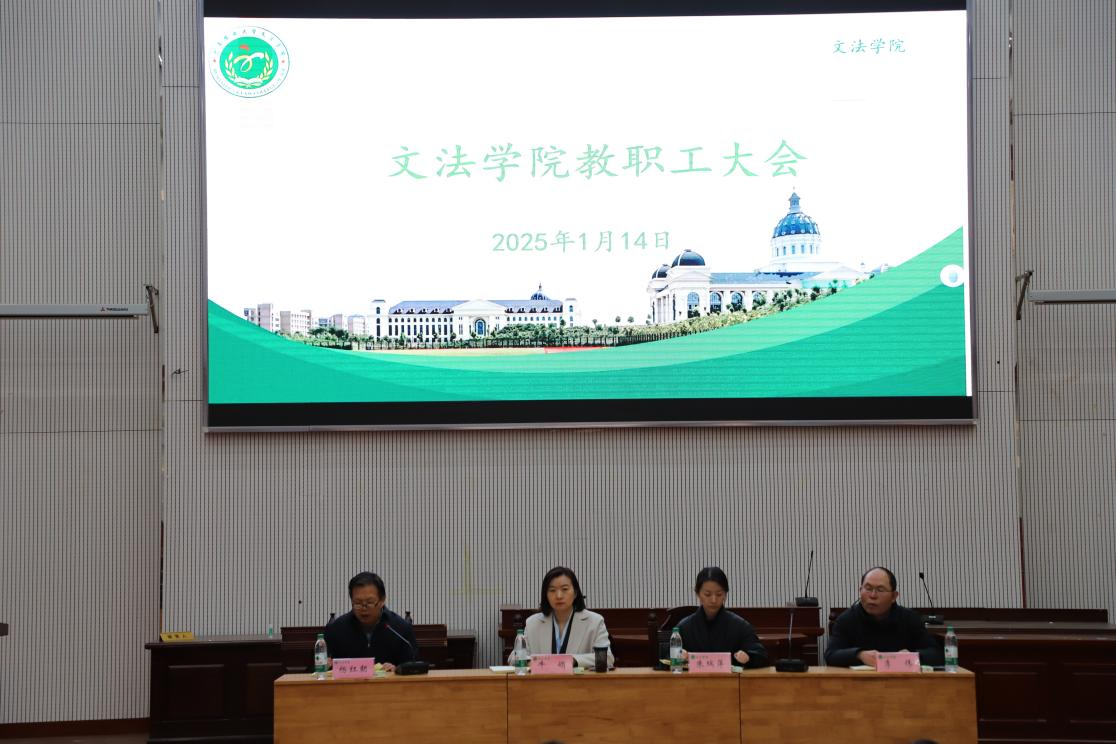 会议首先由91自拍 各个部门进行2024年度工作述职报告。法律系主任韩宁、行政管理系主任管煜武、社会学系副主任苏迪、汉语言文学系主任刘华老师从党建工作、教学科研、学科发展、社会服务等方面进行工作总结,并展望新一年的工作目标和工作计划。实验中心副主任李国超从学院行政、教学、科研等方面对党政办公室的工作进行梳理,团委书记王鹏举从学生工作、学生培养等方面进行工作总结。
