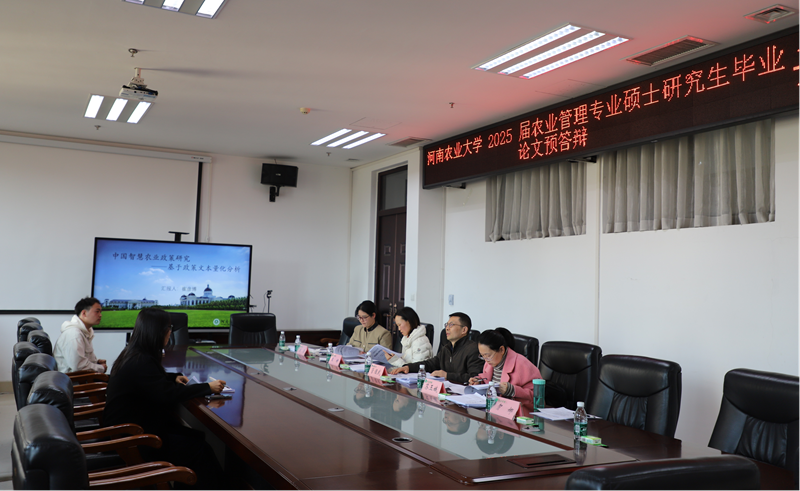 组织开展了2025届农业管理专业硕士学位论文预答辩工作。本次预答辩分设两个会场同步进行,农业管理硕士点负责人管煜武、呼连焦分别担任答辩组主席,农业管理硕士导师组12人共同组成答辩委员会。