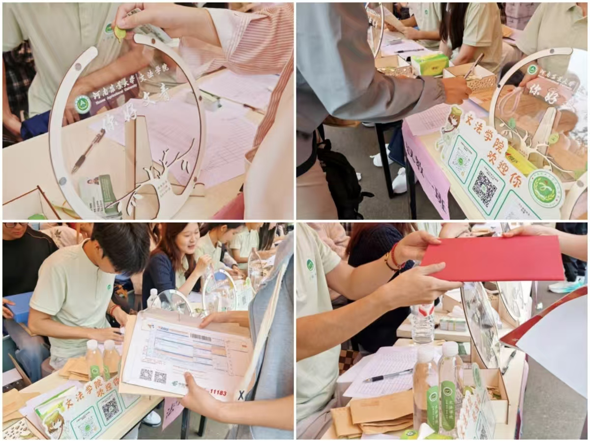 为切实解决新生顾虑,团委办公室为学生们扫描通知书;助贷部在大本营旁开通“绿色通道”,工作人员耐心解读助学贷款、助学金政策,用细致服务为家庭经济困难新生撑起“保护伞”;同时,学长学姐们以“崇尚法治,远离邪教”为主题,分发法制宣传手册,向新生普及法律知识与反邪教常识,既传递“法”的严谨,也融入“文”的生动,让宣传教育更易入心。