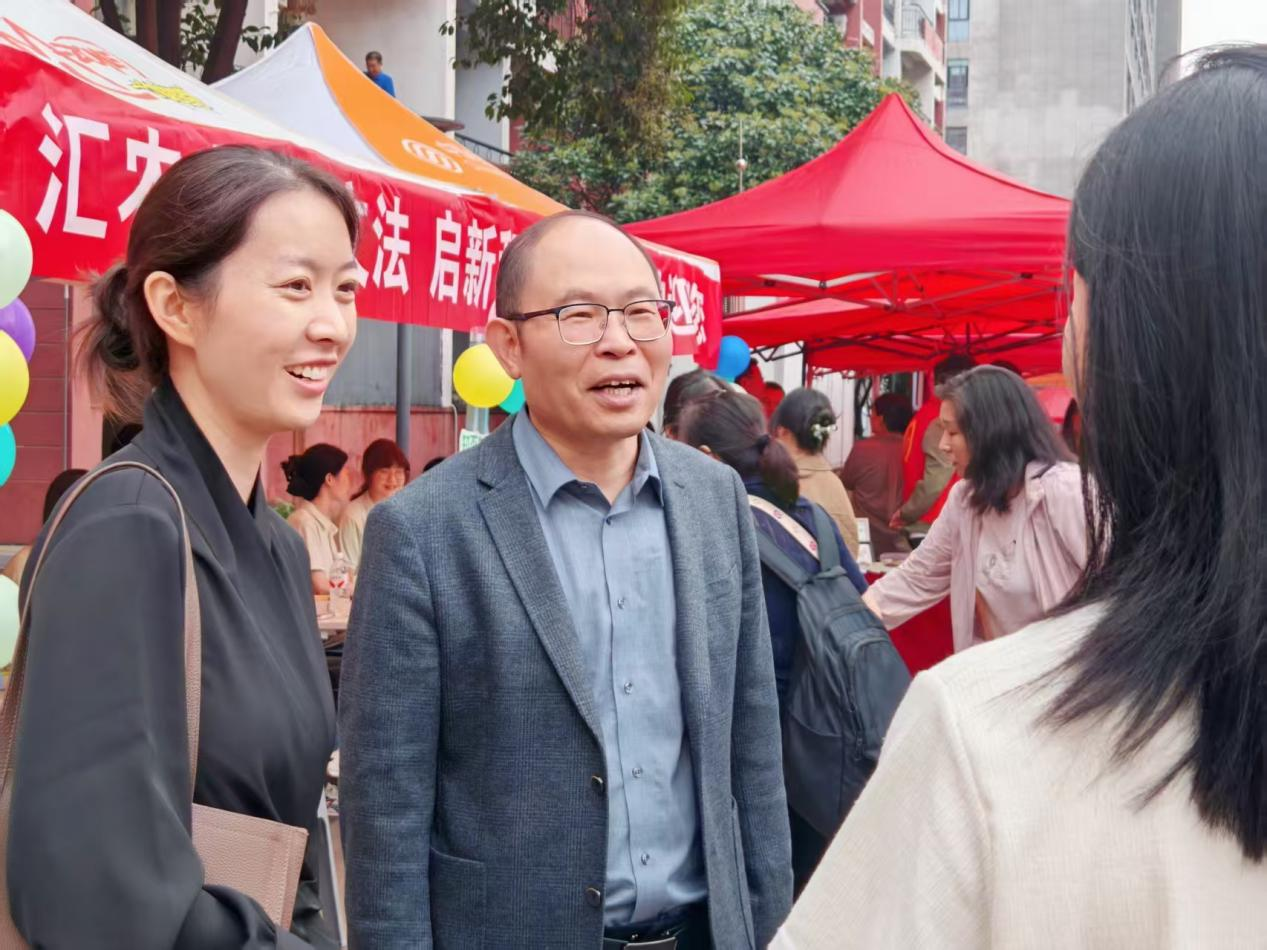 院党委副书记朱瑞萍和李伟院长与新生家长交谈