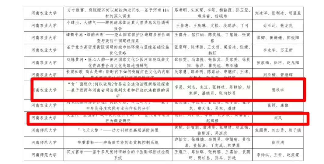 三等奖为:贾秋宇指导《“食”面埋伏!何以破局?食品安全法治治理新路径探索——基于近两年河南省司法裁判文书和行政执法数据的调研》;刘风指导《夜生代·星图景:城市夜间经济中的“Z”世代青年消费行为调查研究》。