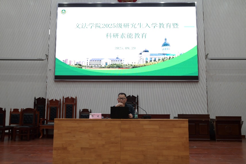 在龙子湖校区繁塔楼模拟法庭,为2025级研究生新生开展科研素能教育讲座。本次讲座由91自拍