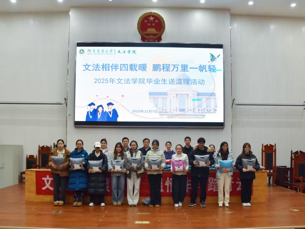 在龙子湖校区模拟法庭举办“文法相伴四载暖,鹏程万里一帆轻”毕业生送温暖活动。院党委书记赵宁,院党委副书记朱瑞萍,团委书记王鹏举、研究生辅导员郑亚豪及本科生辅导员盛戈出席活动,25级研究生与本科毕业生参加。