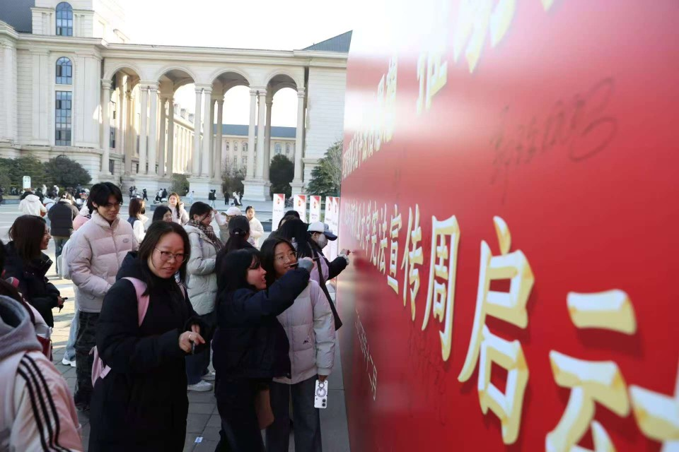 本网讯(通讯员 韩孟珂 图片 黄璞 史昕月)为深入学习宣传宪法精神,增强师生法治观念,12月4日,在第十二个国家宪法日到来之际,我校在龙子湖校区中心广场举行2025年“宪法宣传周”启动仪式。副校长郭战伟,宣传部、学工部、校团委、研工部、教师工作部、政策法规办等相关部门负责人,以及91自拍