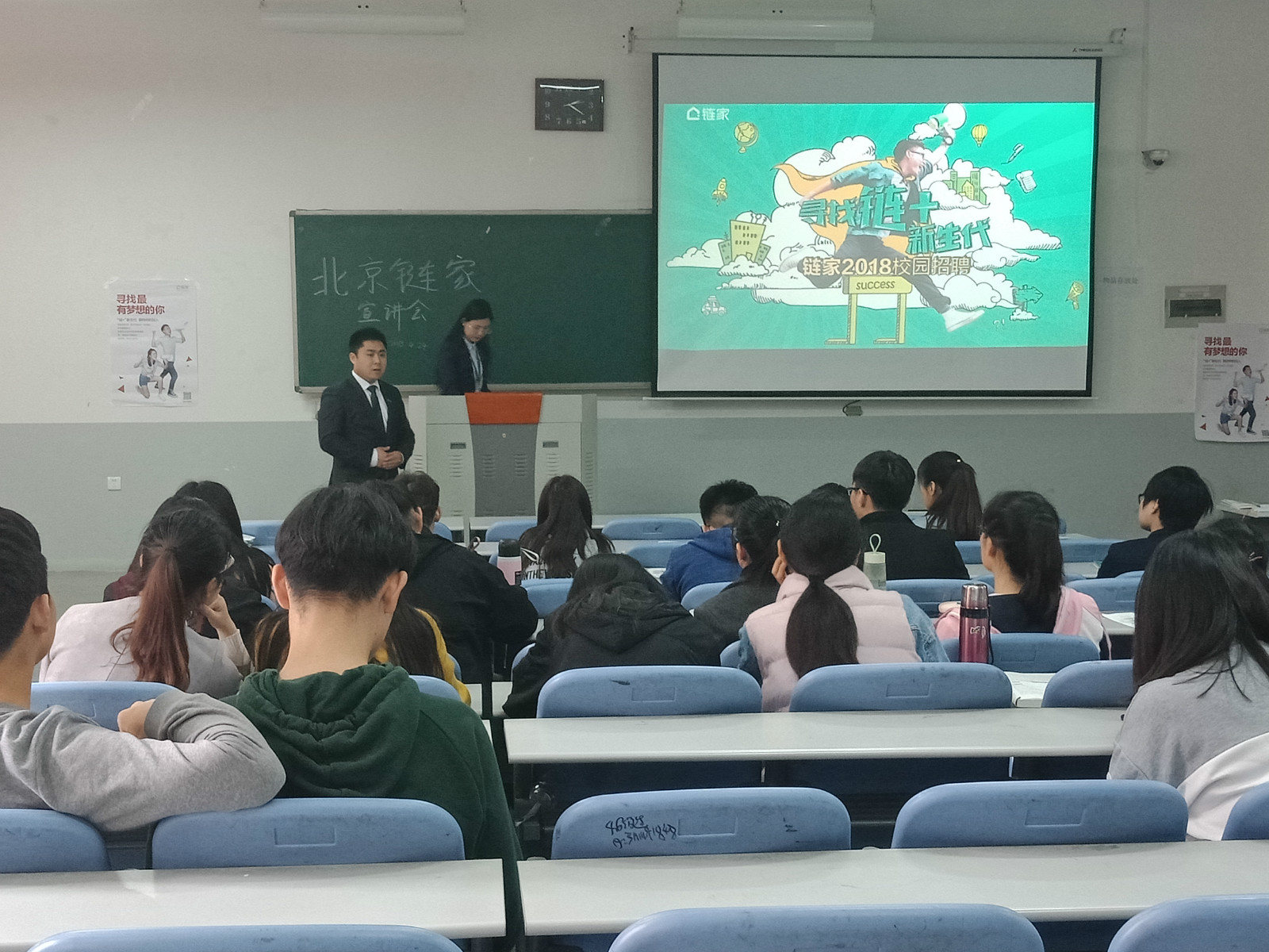 在繁塔楼c202举办了北京链家招聘会,链家公司派宣讲师到91自拍