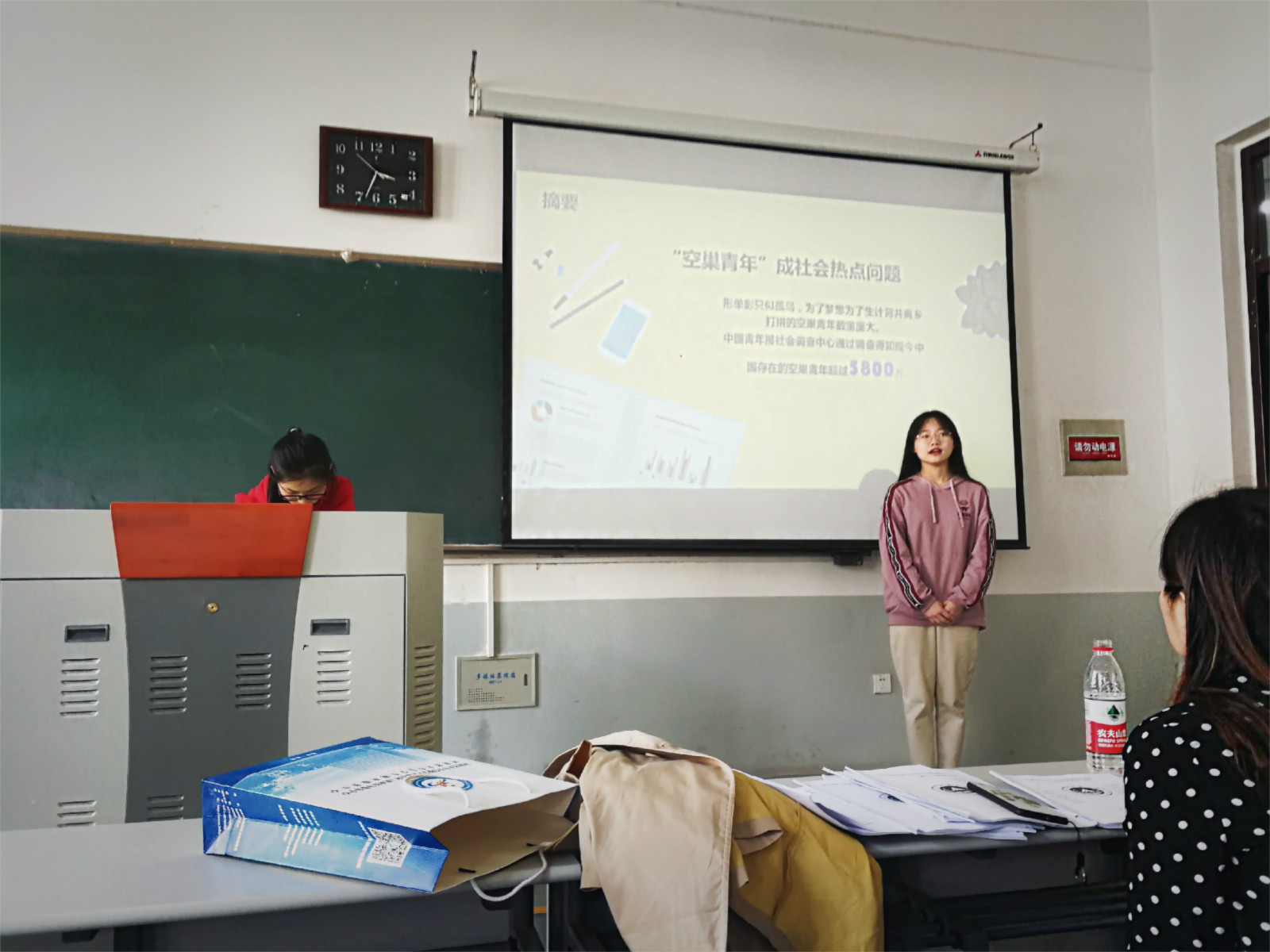 竞赛伊始,团委书记沈倩茹对此次竞赛进行了整体要求和规范,并对参赛作品进行整体点评。大赛上,学生们通过PPT和演讲的方式展示了《新型城镇化背景下河南省农民工的就业问题分析——基于代次的视角》、《千禧一代亲子关系》、《传统文化的前世今生》等调查报告,各团队参赛者切入新时代热点问题,以小见大。沈倩茹也为各个参赛小组提出指导性建议,学术科技作品不仅要明确目标,还要确定内容核心及其带来的社会效益,提高学术科技作品的价值性。本次参赛作品共有21份,入围院赛作品14份。经过演讲展示和严格的评审环节后,评比出一等奖:《新型城镇化背景下河南省农民工的就业问题分析——基于代次的视角》、《高校社区儿童社会工作实务模式研究报告——以“金色少年”系列活动》、《浅析“阴阳合同”法律现象》。二等奖:《关于南阳市乡村实况调研报告》、《保洁女工的社会支持网络构建》、《空巢青年生活与心理健康状况调查——以河南省为例》、《同居情侣家暴问题调查报告》。三等奖:《关于未成年人犯罪低龄化的调查报告》、《议我国动植物保护存在的问题及对策》、《传统文化的前世今生》、《生态农村模式——乡村振兴战略》、《千禧一代亲子关系》、《关于现代农村天价彩礼的调查报告——基于河南省部分地区》、《如何揭开公摊面积的神秘面纱》。