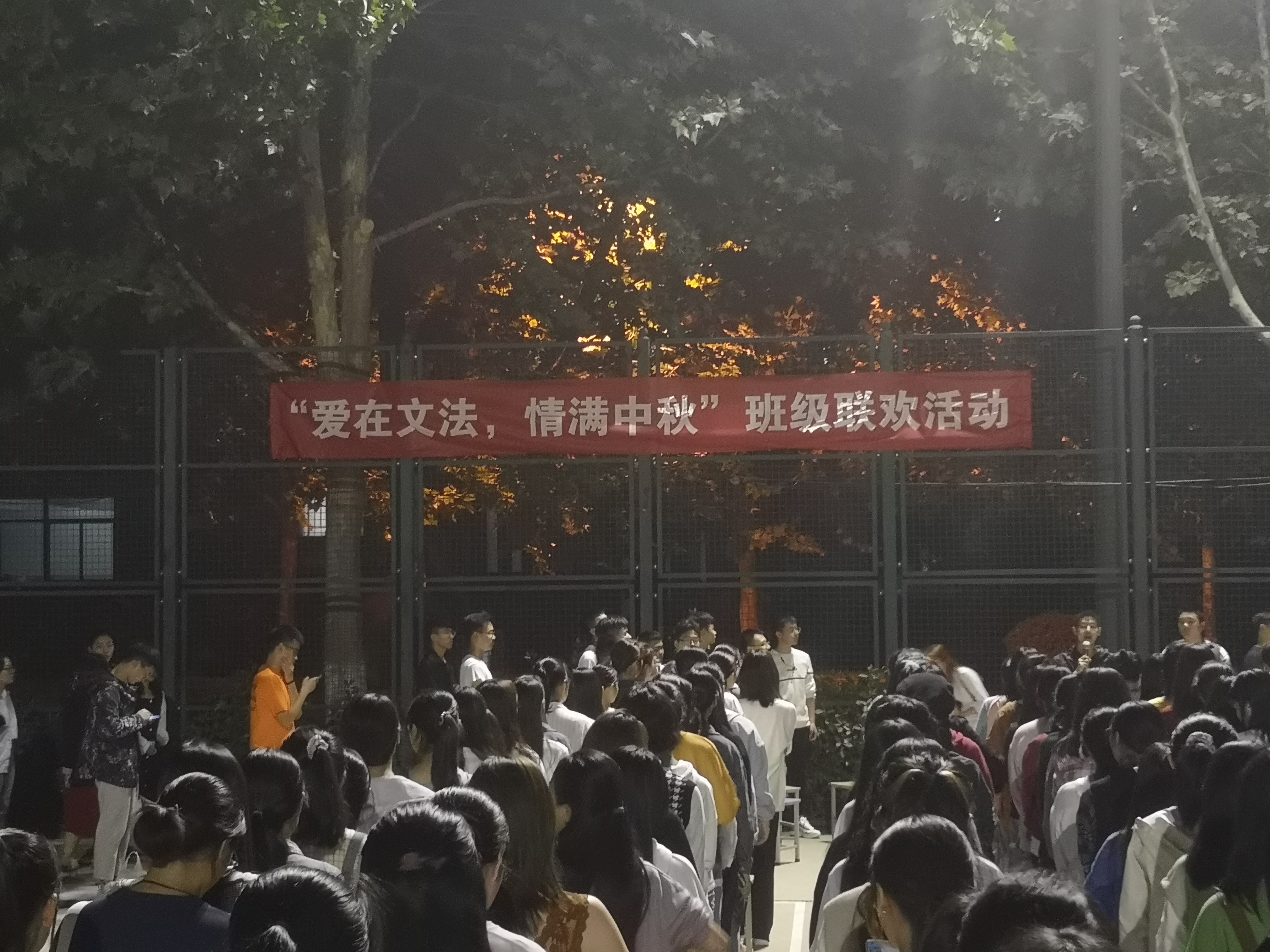 龙子湖校区排球场举办了“爱在文法,情满中秋”班级联谊活动,院团委辅导员王鹏举和全体2020级新生参加本次活动。91自拍 新生满怀欣喜地相聚在学校排球场,通过歌曲、舞蹈等不同形式迎中秋、庆国庆,展现对中华人民共和国成立71周年的祝福之情和中秋佳节的喜悦之情。王鹏举将学院的祝福和问候带给了各位学生,现场洋溢着浓浓的中秋节日氛围。今年的中秋节是新生第一次离开家人过节,在91自拍 这个大家庭中,有刚认识不久的小伙伴,有温暖和蔼的辅导员,还有知心的学长学姐们,在他们的陪伴下,新生们度过了一个难忘的节日。