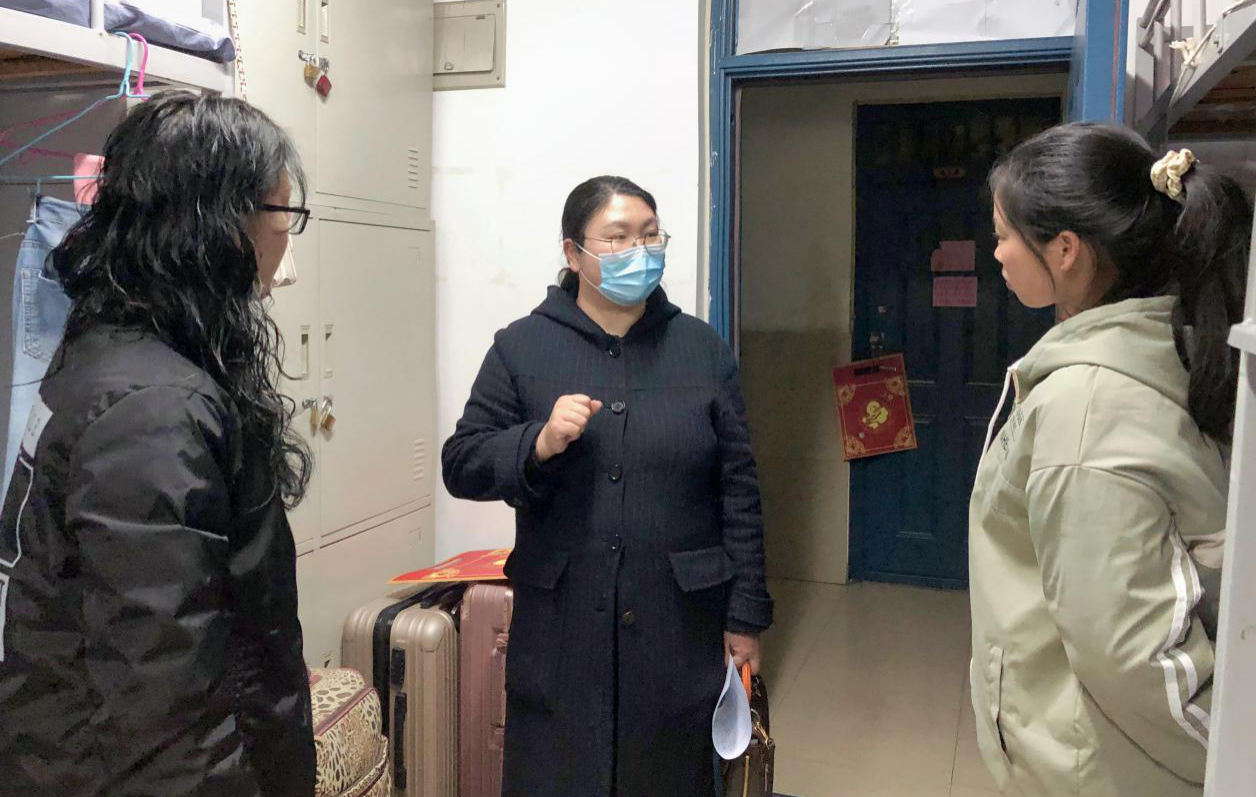党委书记牛娟、党委副书记余果、副院长杨红朝及团委老师等一行人走访了学生宿舍,看望返校学生,了解、关心学生的假期学习生活情况。