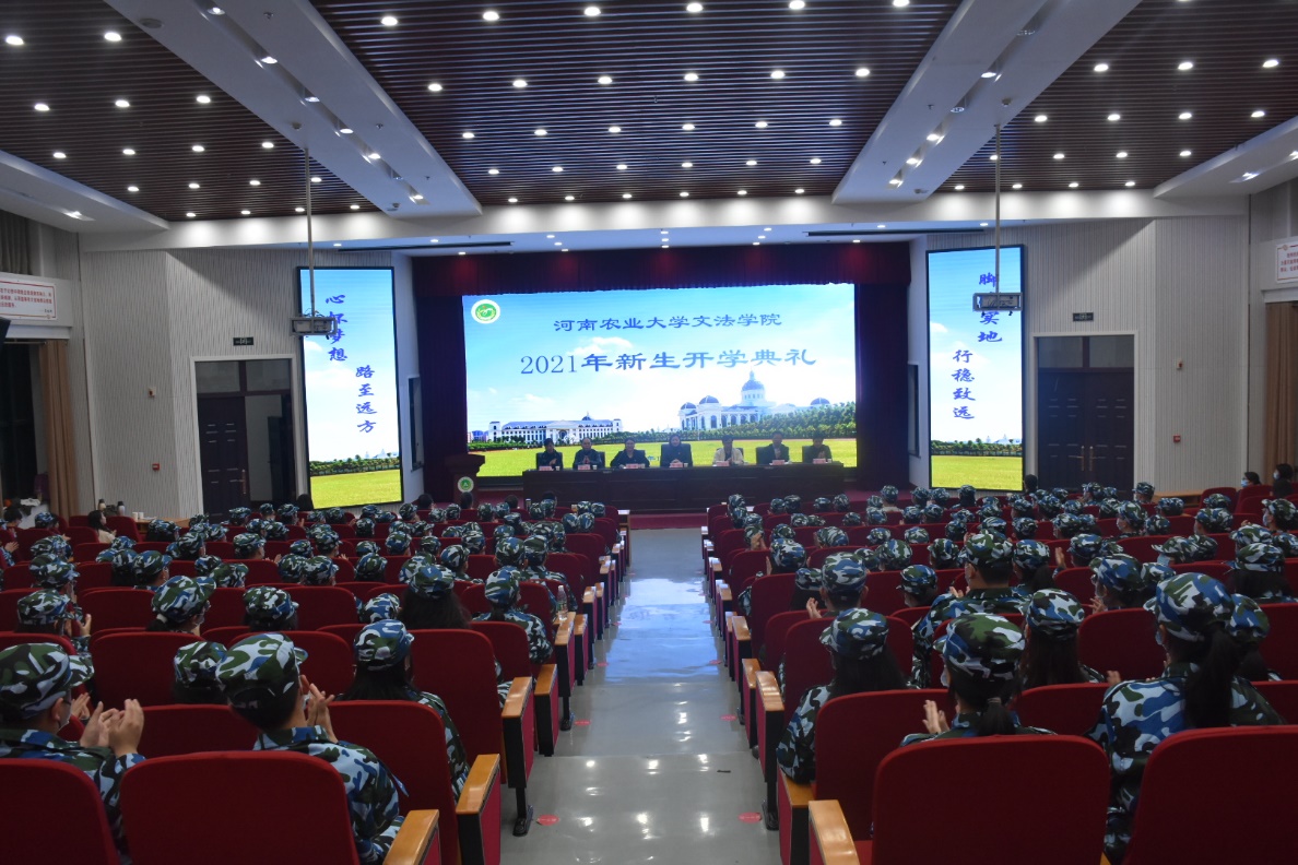 在龙子湖校区AB座大教室1隆重举行2021年新生开学典礼。学院党委委员、各系部主任、2021级本科生班主任、全体2021级研究生新生及本科生新生参加会议,会议由院党委副书记余果主持。