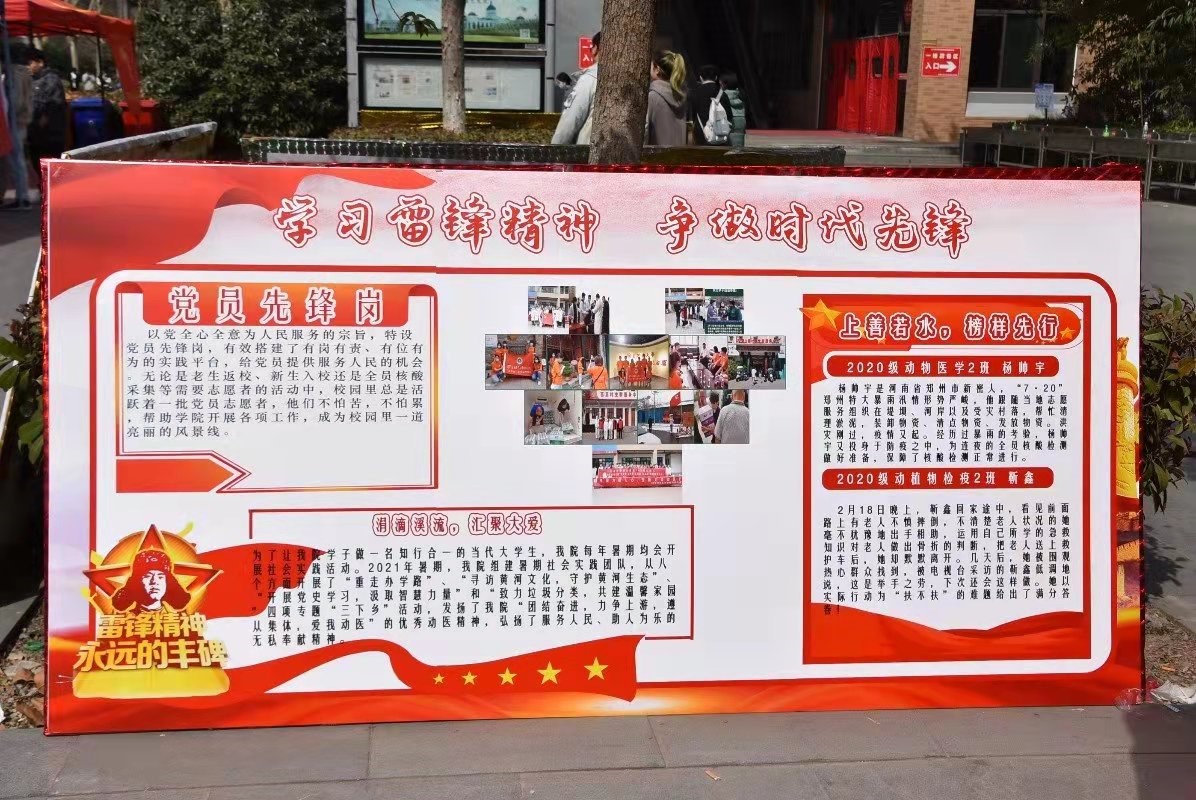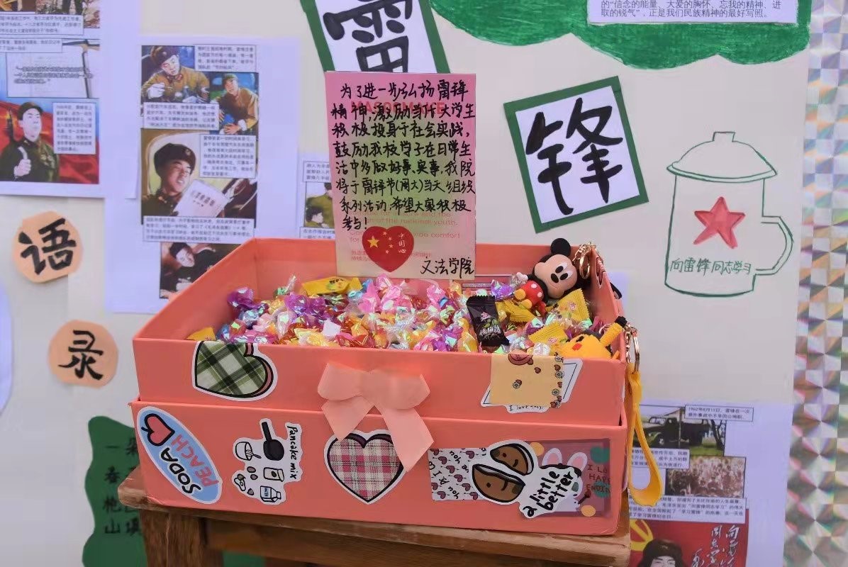 91自拍 面向全体学生收集照片,制作照片墙展示好人好事,并于一餐文化广场放置糖果礼盒开展雷锋纪念日活动;举办“学雷锋,树新风”知识竞赛活动,结合时事热点,宣扬雷锋精神的时代内涵;绘制以雷锋纪念日为主题的板报,弘扬雷锋精神;组织学生志愿团进行校园劳动,打扫校园环境。