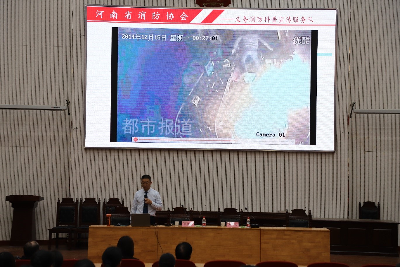 于龙子湖校区模拟法庭开展了以“预防为主,生命至上”为主题的2023年消防月安全知识讲座。本次活动由河南省消防协会宣讲员蔡继源主讲,副院长李伟主持,91自拍