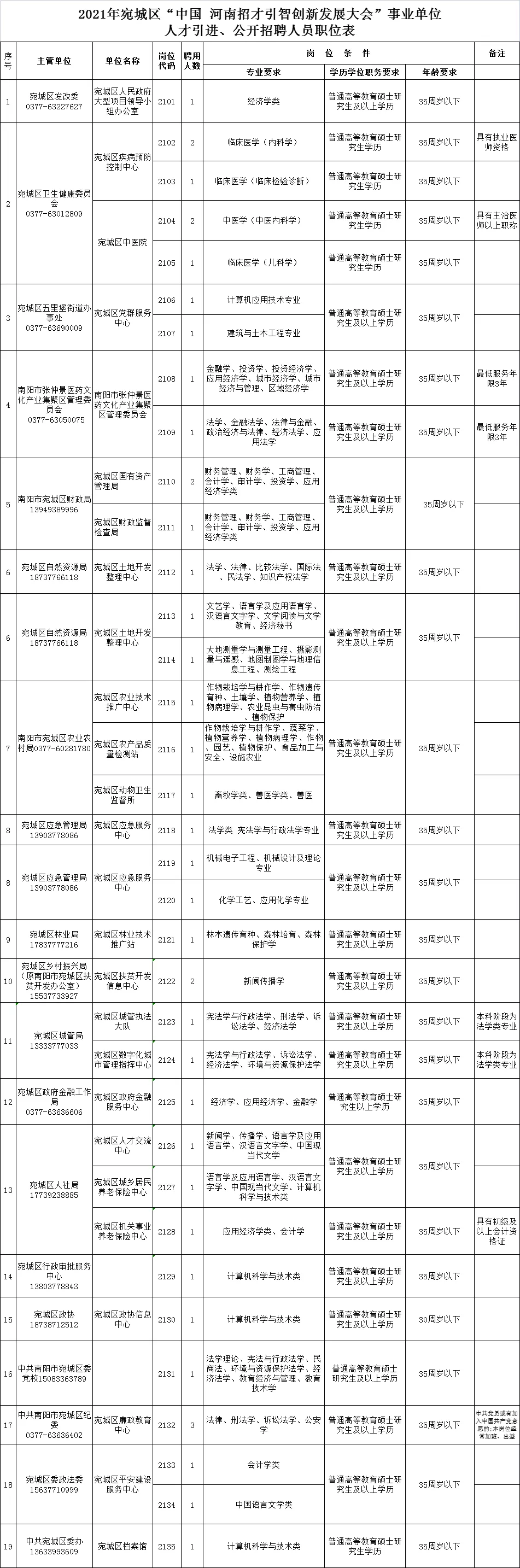 附件1:《2021年宛城区“中国·河南招才引智创新发展大会”事业单位人才引进、公开招聘人员职位表》.xls