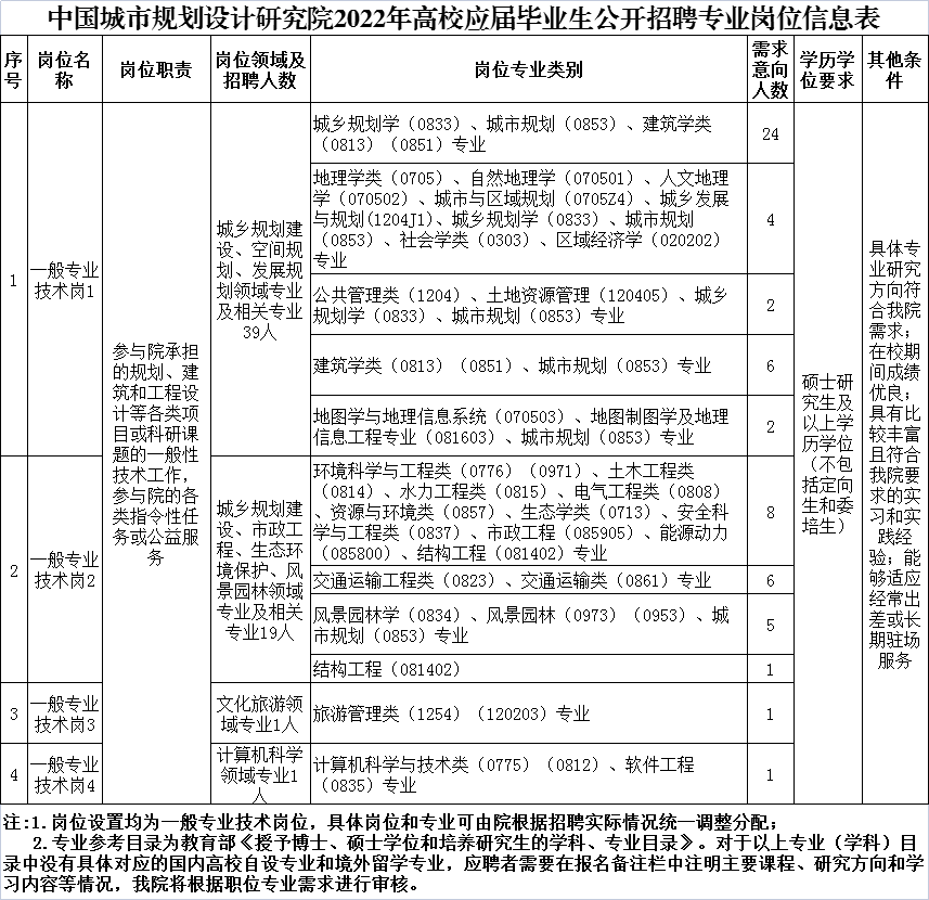招聘岗位为一般专业技术岗位,参与院承担的规划、工程和建筑设计等各类项目或科研课题,参与院的各类指令性任务或公益服务,具体岗位和专业由院统一调整分配。具体要求详见公开招聘专业岗位信息表,其中,有关岗位专业条件参考《授予博士、硕士学位和培养研究生的学科、专业目录》,对于所学专业接近但又不在上述参考目录中的国内高校自设专业和境外留学专业,应聘者需要在报名备注栏中注明主要课程、研究方向和学习内容等情况,91自拍 将根据职位专业需求进行审核。